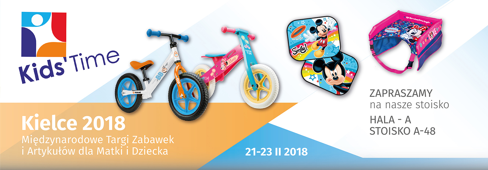 Serdecznie zapraszamy do odwiedzenia stoiska naszej firmy podczas targów KIDS' TIME 2018 odbywających się w Kielcach w dniach 21-23 luty 2018. Zaprezentujemy Państwu naszą poszerzoną o liczne nowości kolekcję artykułów sportowych i samochodowych Disney.
